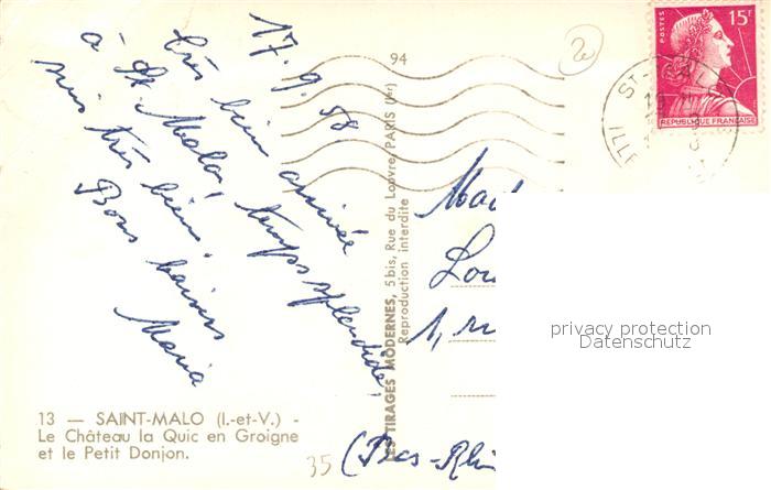 13502082 carte postale Saint-Malo 35 Chateau la Quic en Groigne et le Petit Donjon postalisch gelaufen Erhaltung siehe scans [LiesaD40] KatCode: 11170035435288