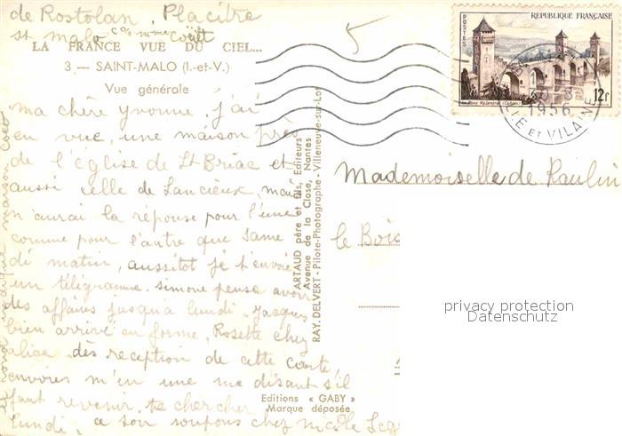 12770938 carte postale Saint-Malo 35 Fliegeraufnahme postalisch gelaufen Erhaltung siehe scans [NatalD47] KatCode: 11170035435288