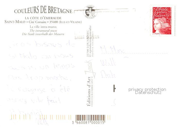 13152142 carte postale Saint-Malo 35 Fliegeraufnahme Altstadt Hafen postalisch gelaufen Erhaltung siehe scans [KathaD81] KatCode: 11170035435288