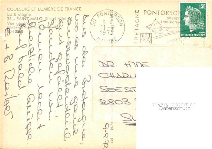 12879489 carte postale Saint-Malo 35 Fliegeraufnahme Altstadt postalisch gelaufen Erhaltung siehe scans [AndreD76] KatCode: 11170035435288
