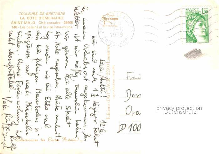 12826105 carte postale Saint-Malo 35 Fliegeraufnahme Hafen Altstadt postalisch gelaufen Erhaltung siehe scans [AndreD76] KatCode: 11170035435288