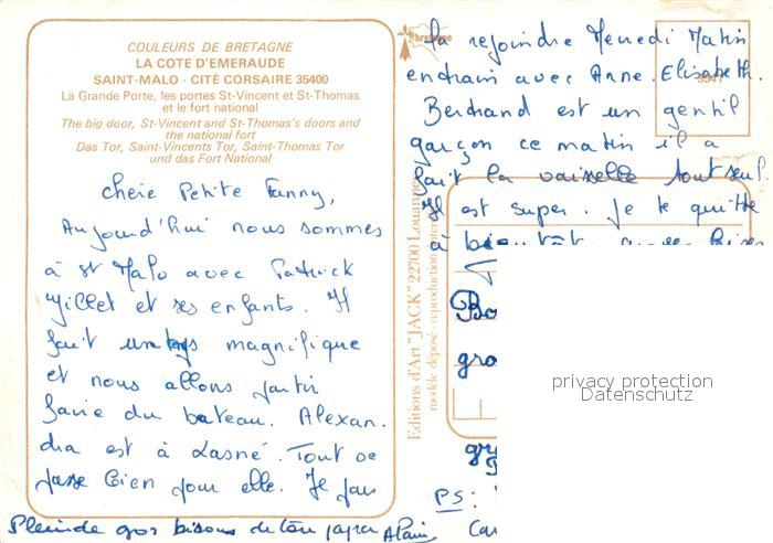 13581992 Saint-Malo 35 Grande Porte Portes Saint Vincent et Saint Thomas Fort National Pirat Zeichnung KatCode 11170035435288