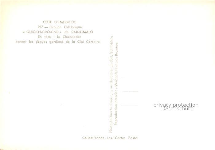 13287232 Saint-Malo 35 Groupe Folklorique Quic-en-Groigne Chiennetier Dogues Gardiens Cite Corsaire postalisch nicht gelaufen Erhaltung siehe scans [PaolaD17] KatCode: 11170035435288