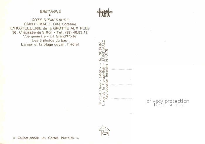 12668074 Saint-Malo 35 Hostellerie de la Grotte aux Fees Vue generale Grande Porte La mer et la plage devant l Hotel postalisch nicht gelaufen Erhaltung siehe scans [WerneD78] KatCode: 11170035435288