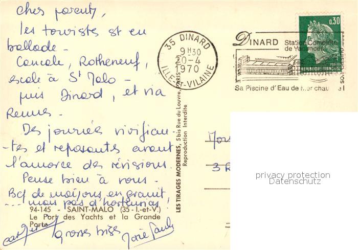 13580982 carte postale Saint-Malo 35 Le Port des Yachts et la Grande Porte postalisch gelaufen Erhaltung siehe scans [WerneD78] KatCode: 11170035435288