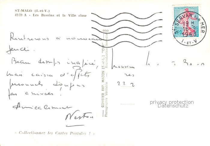 13580845 carte postale Saint-Malo 35 Les bassins et la ville close vue aérienne postalisch gelaufen Erhaltung siehe scans [FriedD77] KatCode: 11170035435288
