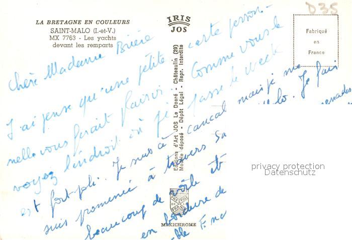 13581993 Saint-Malo 35 Les yachts devant les remparts postalisch nicht gelaufen Erhaltung siehe scans [FriedD77] Frie Katcode 11170035435288