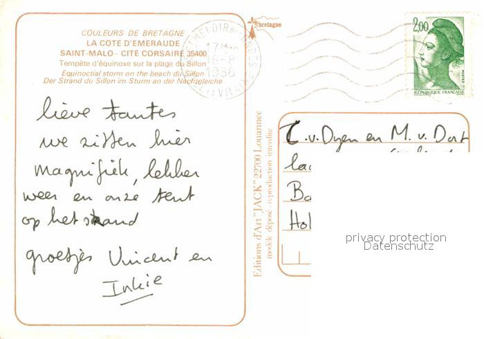 12859352 carte postale Saint-Malo 35 Meeresbrandung postalisch gelaufen Erhaltung siehe scans [WerneD78] KatCode: 11170035435288