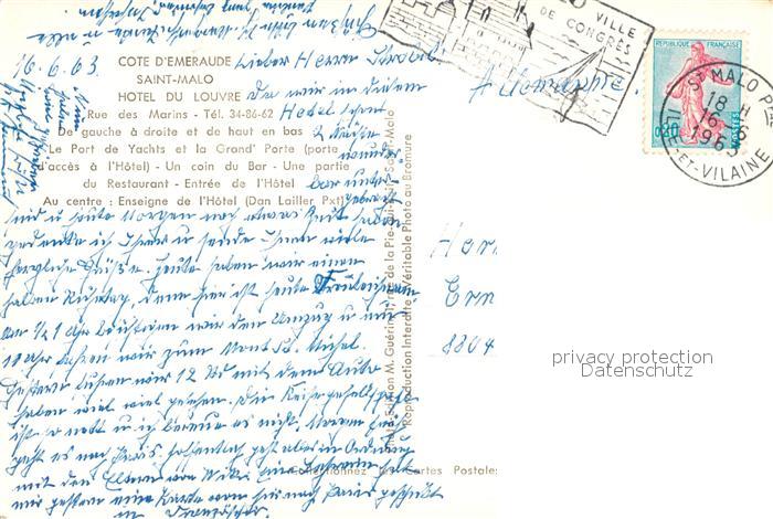 13170038 carte postale Saint-Malo 35 Restaurant Hotel Louvre postalisch gelaufen Erhaltung siehe scans [KathaD81] KatCode: 11170035435288
