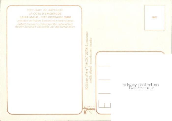 11985408 Saint-Malo 35 Robert Surcouf Denkmal postalisch nicht gelaufen Erhaltung siehe scans KatCode: 11170035435288