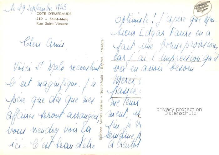 13279226 Saint-Malo 35 Rue Saint Vincent postalisch nicht gelaufen Erhaltung siehe scans [WerneD78] KatCode: 11170035435288