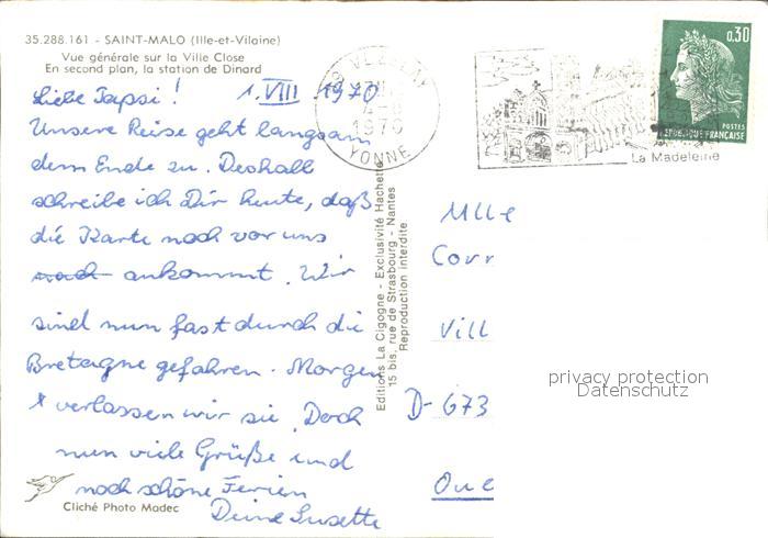 12018868 carte postale Saint-Malo 35 Ville Close second plan station Dinard postalisch gelaufen Erhaltung siehe scans KatCode: 11170035435288