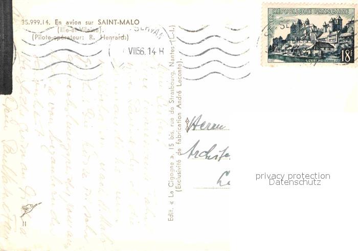 12757039 carte postale Saint-Malo 35 Vue aerienne postalisch gelaufen Erhaltung siehe scans [FriedD77] KatCode: 11170035435288