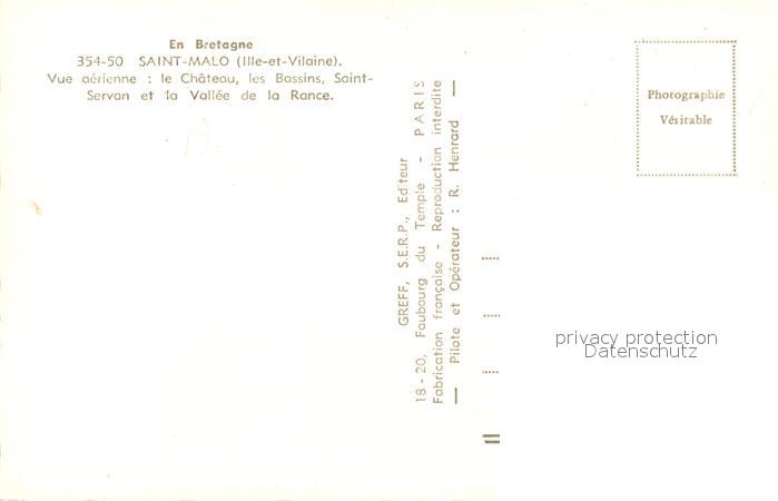 13534825 Saint-Malo 35 Vue aerienne Le Chateau les Bassins Saint Servan et la Vallee de la Rance postalisch nicht gelaufen Erhaltung siehe scans [WerneD78] KatCode: 11170035435288