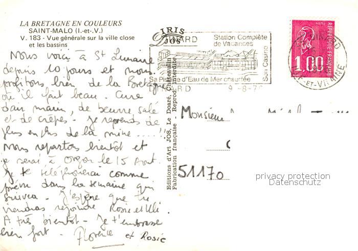 13357223 carte postale Saint-Malo 35 Vue aérienne sur la ville close et les bassins postalisch gelaufen Erhaltung siehe scans [FriedD77] KatCode: 11170035435288