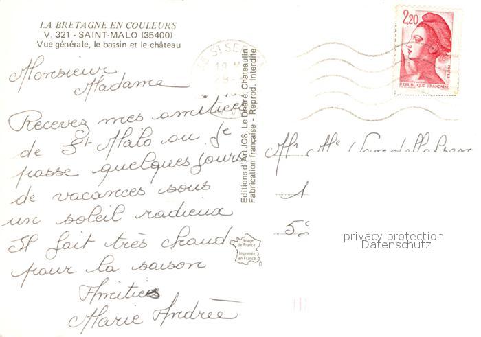 12935402 carte postale Saint-Malo 35 Vue generale aerienne le bassin et le chateau postalisch gelaufen Erhaltung siehe scans [WerneD78] KatCode: 11170035435288
