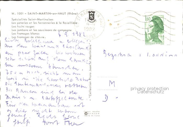 12032548 carte postale Saint-Martin-en-Haut Fromages chevre blancs jambons saucissons compagne Fruits rouges postalisch gelaufen Erhaltung siehe scans KatCode: 11170069169227