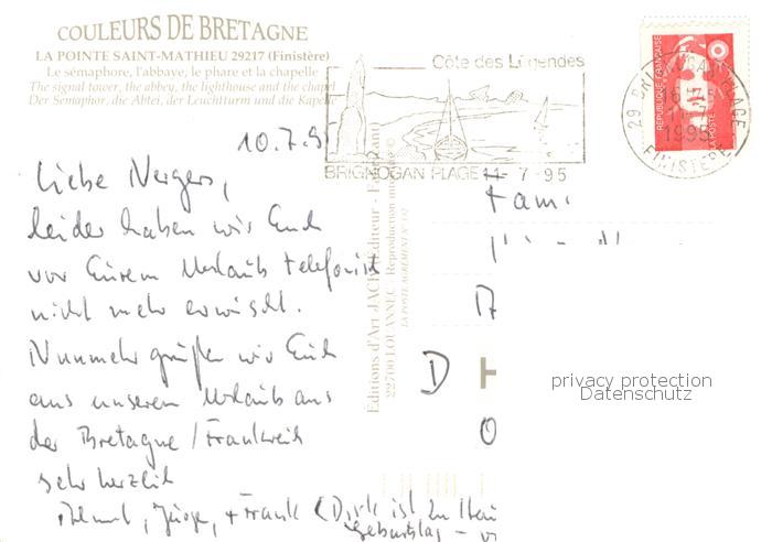 13776369 Saint Mathieu Pointe La Plougonvelin Der Semaphor – Die Abtei – Leuchtturm u. Kapelle postalisch gelaufen Erhaltung siehe scans [LiesaD40] carte postale Lies Katcode 11170029129190