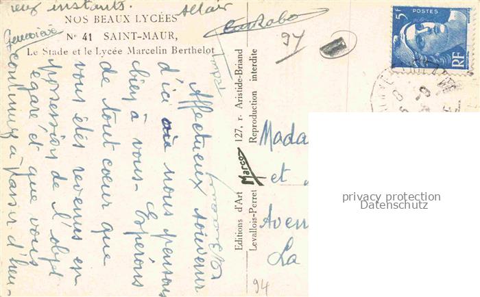 14112494 Saint-Maur Creteil 94 Val-de-Marne Le Stade et le Lycée Marcelin Berthelot postalisch gelaufen Erhaltung siehe scans [FriedD77] alte Postkarte Frie Katcode 11170094194069