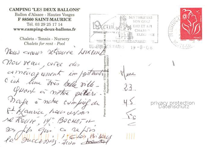 12926746 carte postale Saint-Maurice Selestat-Erstein Camping Les deux Ballons Piscine postalisch gelaufen Erhaltung siehe scans [FriedD77] KatCode: 11170067567427