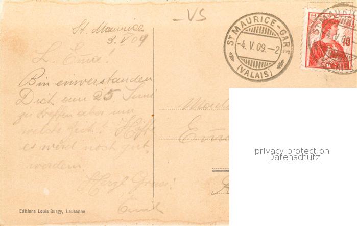 13799874 alte Postkarte Saint Maurice VS Chateau et le Rhône postalisch gelaufen Erhaltung siehe scans [FriedD77] KatCode: 11470240845874