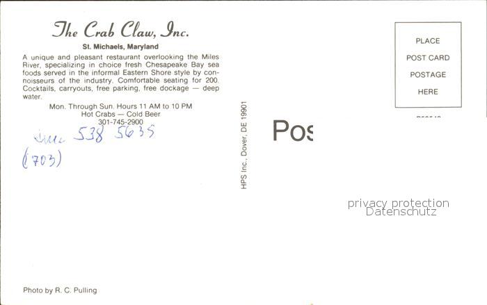 72486815 Saint Michaels Maryland The Crab Claw Inc Motorboote postalisch nicht gelaufen Erhaltung siehe scans KatCode: 14140220000000
