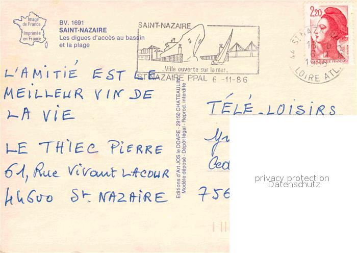 12879484 carte postale Saint-Nazaire Loire-Atlantique Fliegeraufnahme postalisch gelaufen Erhaltung siehe scans [AndreD76] KatCode: 11170044344184