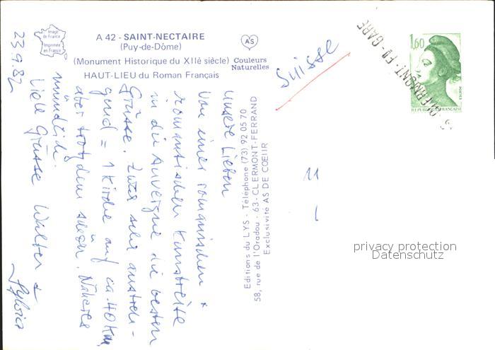 12352377 carte postale Saint-Nectaire Puy de Dome Haut Lieu du Roman Francais postalisch gelaufen Erhaltung siehe scans KatCode: 11170063363380
