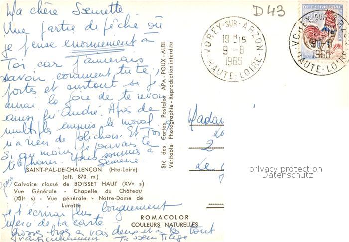 13578163 carte postale Saint-Pal-de-Chalencon Calvaire classe de Boisset Haut Vue generale Chapelle du Chateau Notre Dame de Lorette postalisch gelaufen Erhaltung siehe scans [WerneD78] KatCode: 11170043343212