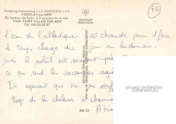 13522237 Saint-Palais-sur-Mer Camping Caravaning Courlay sur Mer Vue aerienne postalisch nicht gelaufen Erhaltung siehe scans [WerneD78] KatCode: 11170017217380