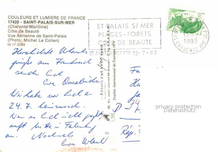 12761112 carte postale Saint-Palais-sur-Mer Fliegeraufnahme mit Strand postalisch gelaufen Erhaltung siehe scans [LiesaD40] KatCode: 11170017217380