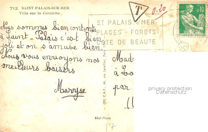 13494043 carte postale Saint-Palais-sur-Mer Villa sur la Corniche postalisch gelaufen Erhaltung siehe scans [FriedD77] KatCode: 11170017217380