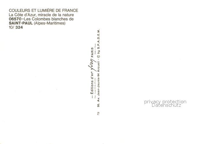 13025494 Saint-Paul Alpes-Maritimes Colombes blanches postalisch nicht gelaufen Erhaltung siehe scans [PaolaD17] KatCode: 11170006106128