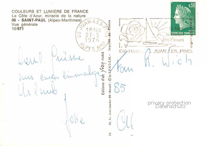 12834788 carte postale Saint-Paul Alpes-Maritimes Vue generale postalisch gelaufen Erhaltung siehe scans [PaolaD17] KatCode: 11170006106128
