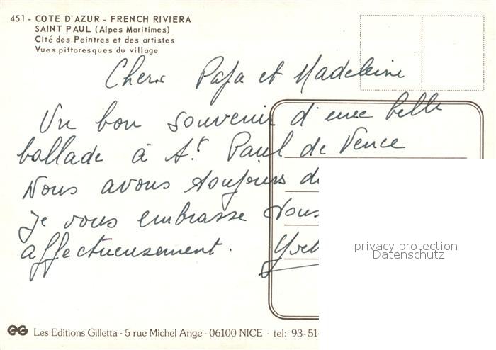 13535660 Saint Paul Cote d Azur Cité des Peintres et des artistes postalisch nicht gelaufen Erhaltung siehe scans [FriedD77] KatCode: 11170006106029