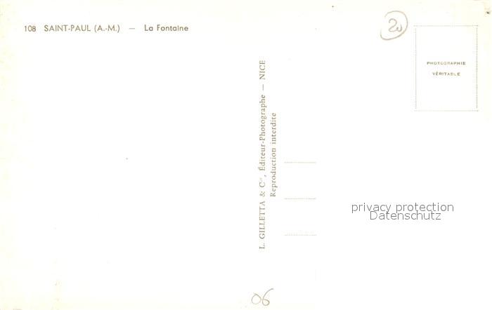 13493413 Saint-Paul-de-Vence Fontaine postalisch nicht gelaufen Erhaltung siehe scans [FriedD77] KatCode: 11170006106044