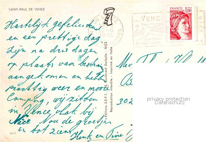 12664022 carte postale Saint-Paul-de-Vence Gasse postalisch gelaufen Erhaltung siehe scans [FriedD77] KatCode: 11170006106044