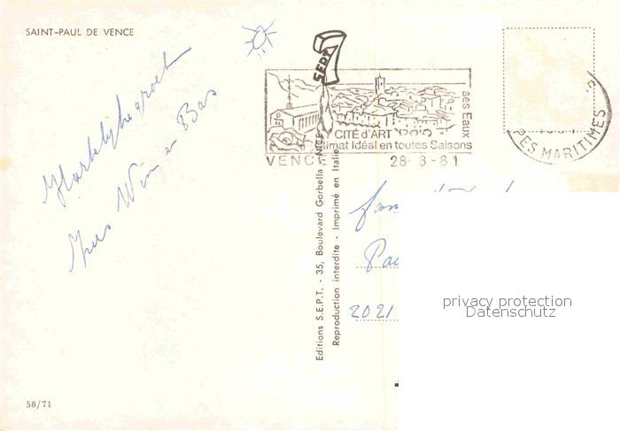 12662022 carte postale Saint-Paul-de-Vence Kleines Tor postalisch gelaufen Erhaltung siehe scans [AndreD76] KatCode: 11170006106044