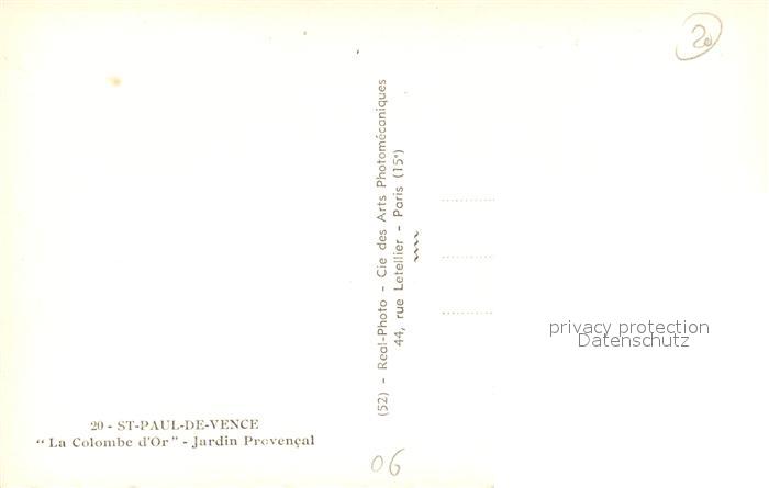 13493401 Saint-Paul-de-Vence La Colombe d Or Jardin Provencal postalisch nicht gelaufen Erhaltung siehe scans [FriedD77] KatCode: 11170006106044