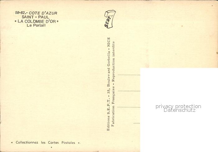 12493762 Saint-Paul-de-Vence La Colombe d Or le Portail postalisch nicht gelaufen Erhaltung siehe scans KatCode: 11170006106044