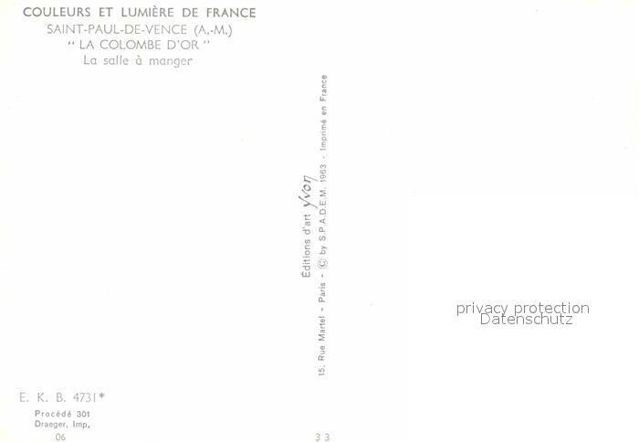 12772356 Saint-Paul-de-Vence La Colombe D`Or postalisch nicht gelaufen Erhaltung siehe scans [AndreD76] KatCode: 11170006106044