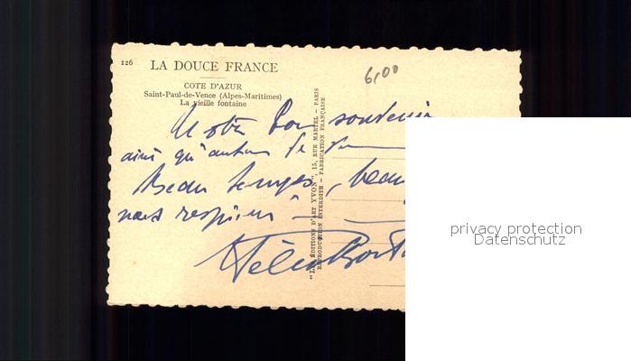 11675304 Saint-Paul-de-Vence La vieille fontaine Serie La Douce France Kuenstlerkarte postalisch nicht gelaufen KatCode: 11170006106044