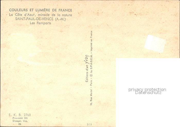 12271689 Saint-Paul-de-Vence Remparts postalisch nicht gelaufen Erhaltung siehe scans KatCode: 11170006106044