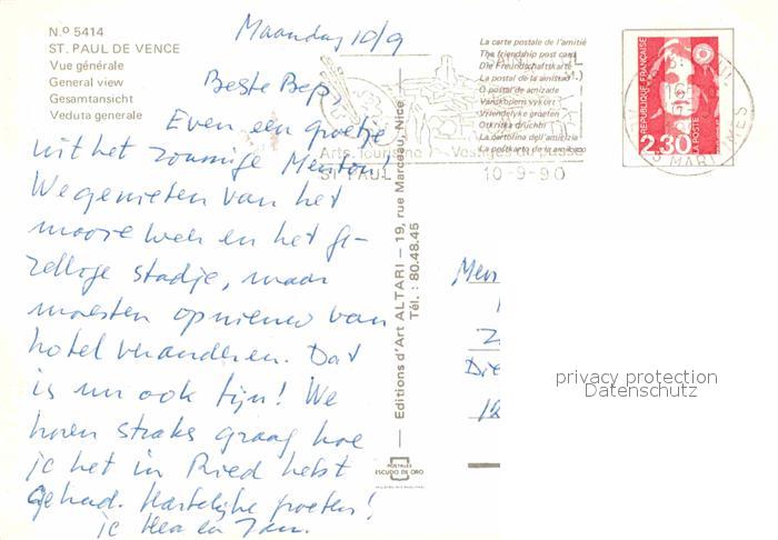12875471 carte postale Saint-Paul-de-Vence Vue Generale postalisch gelaufen Erhaltung siehe scans [FriedD77] KatCode: 11170006106044
