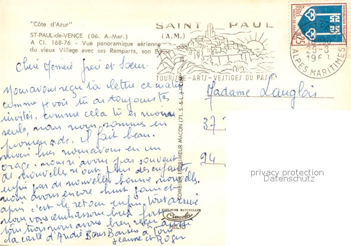 13590133 Saint-Paul-de-Vence Vue panoramique aerienne duvieux Village ave ses Remparts son Eglise postalisch gelaufen Erhaltung siehe scans [WerneD78] carte postale Wern Katcode 11170006106044