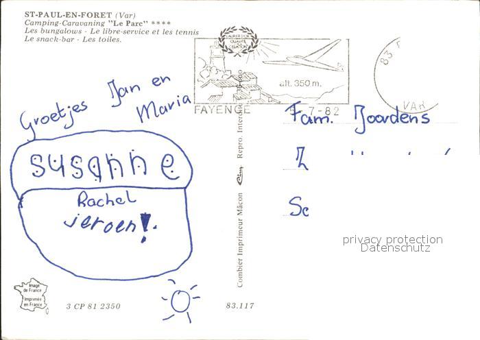 12235682 carte postale Saint-Paul-en-Foret Camping Caravaning Le Parc Tennis Restaurant postalisch gelaufen Erhaltung siehe scans KatCode: 11170083183117