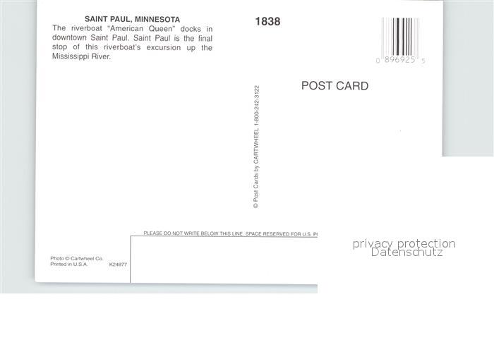 72583053 Saint Paul Minnesota Riverboat American Queen on Mississippi River Downtown postalisch nicht gelaufen Erhaltung siehe scans [FriedD77] KatCode: 14140250000000