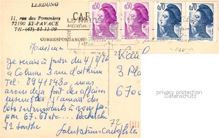 13487786 carte postale Saint-Pavace Chateau de Chaien de Coeurs et le Park postalisch gelaufen Erhaltung siehe scans [LiesaD40] KatCode: 11170072372310
