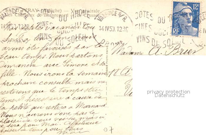 13557557 carte postale Saint-Peray Chateau de Beauregard postalisch gelaufen Erhaltung siehe scans [KathaD81] KatCode: 11170007307281
