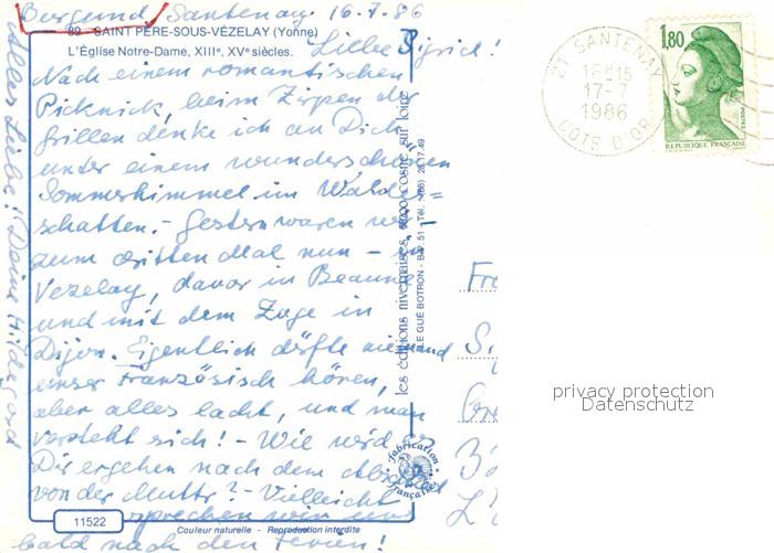 12869372 carte postale Saint-Pere d Avallon Sous Vezelay Eglise Notre Dame postalisch gelaufen Erhaltung siehe scans [NatalD47] KatCode: 11170089289364